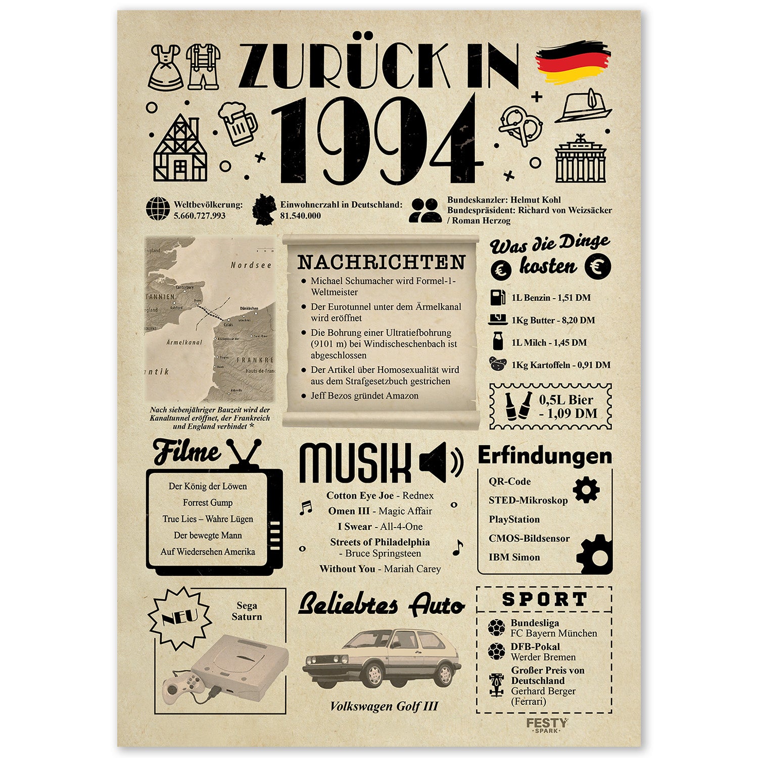 Geburtstagskarte zum 32. Geburtstag 1994 – Geschenk für Frauen und Männer