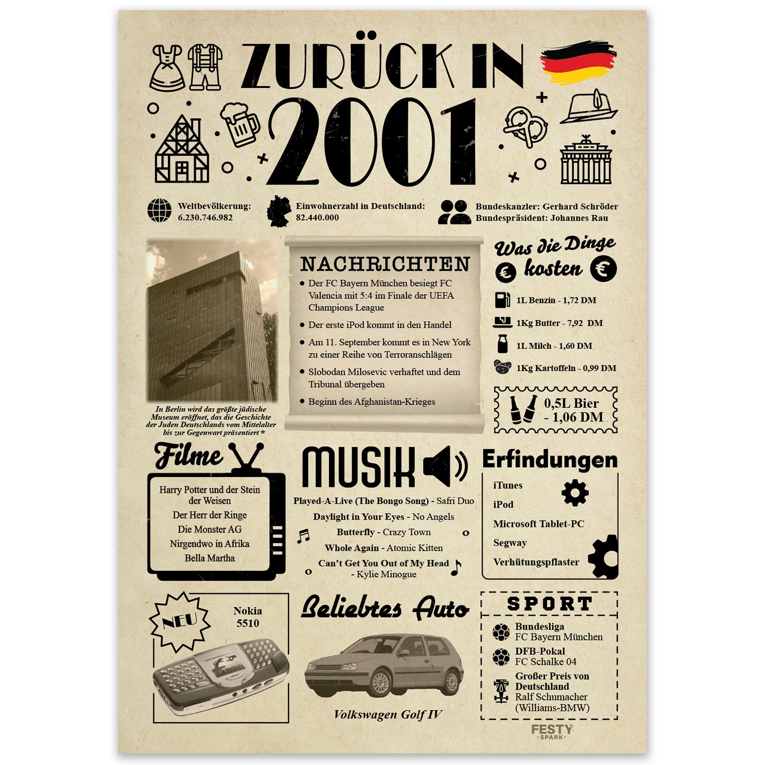 Geburtstagskarte zum 25. Geburtstag 2001 – Geschenk für Frauen und Männer