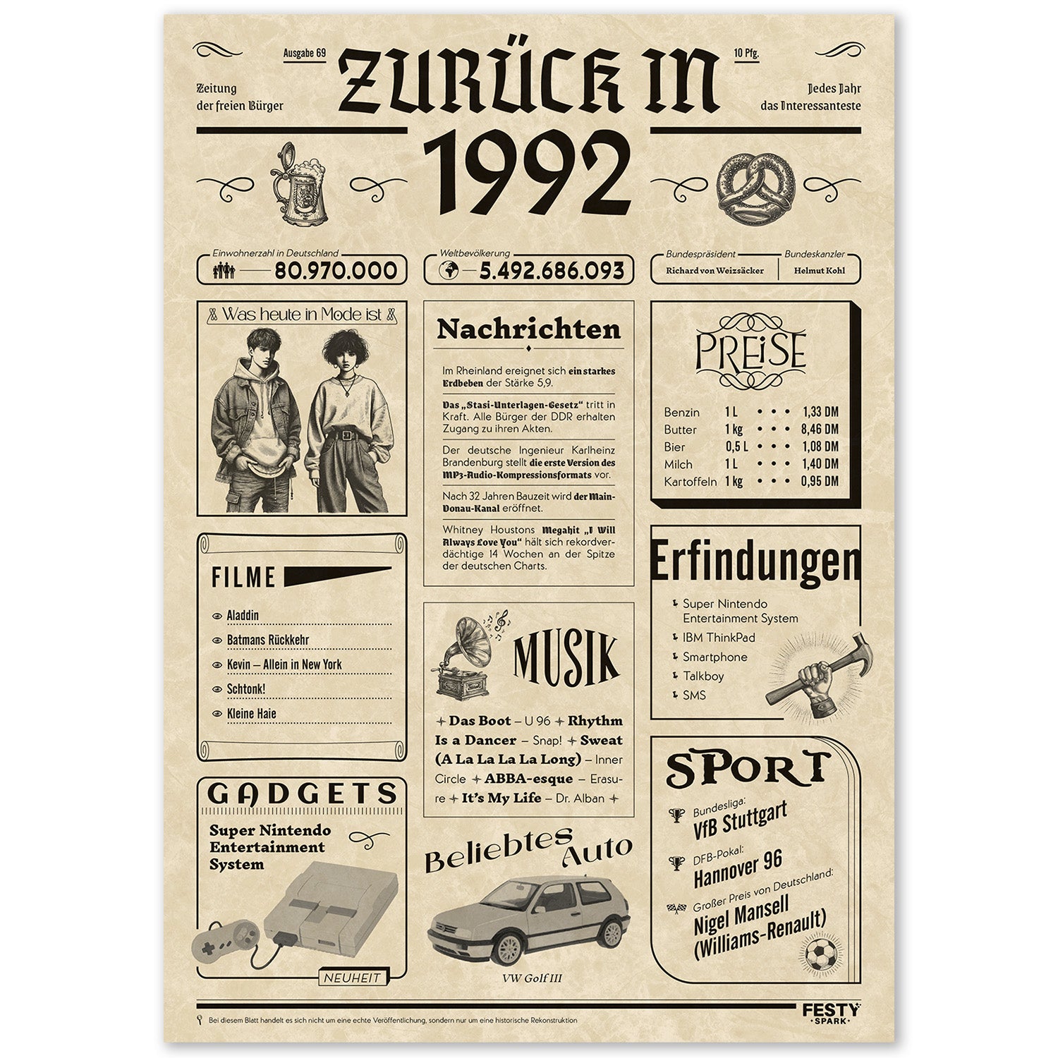 Geburtstagskarte zum 34. Geburtstag 1992 – Geschenk für Frauen und Männer